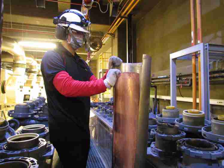 彩运网将废弃物转化成有效的工业或民生原物料,,图为废铜液淬炼后再制成纯度极高的铜管