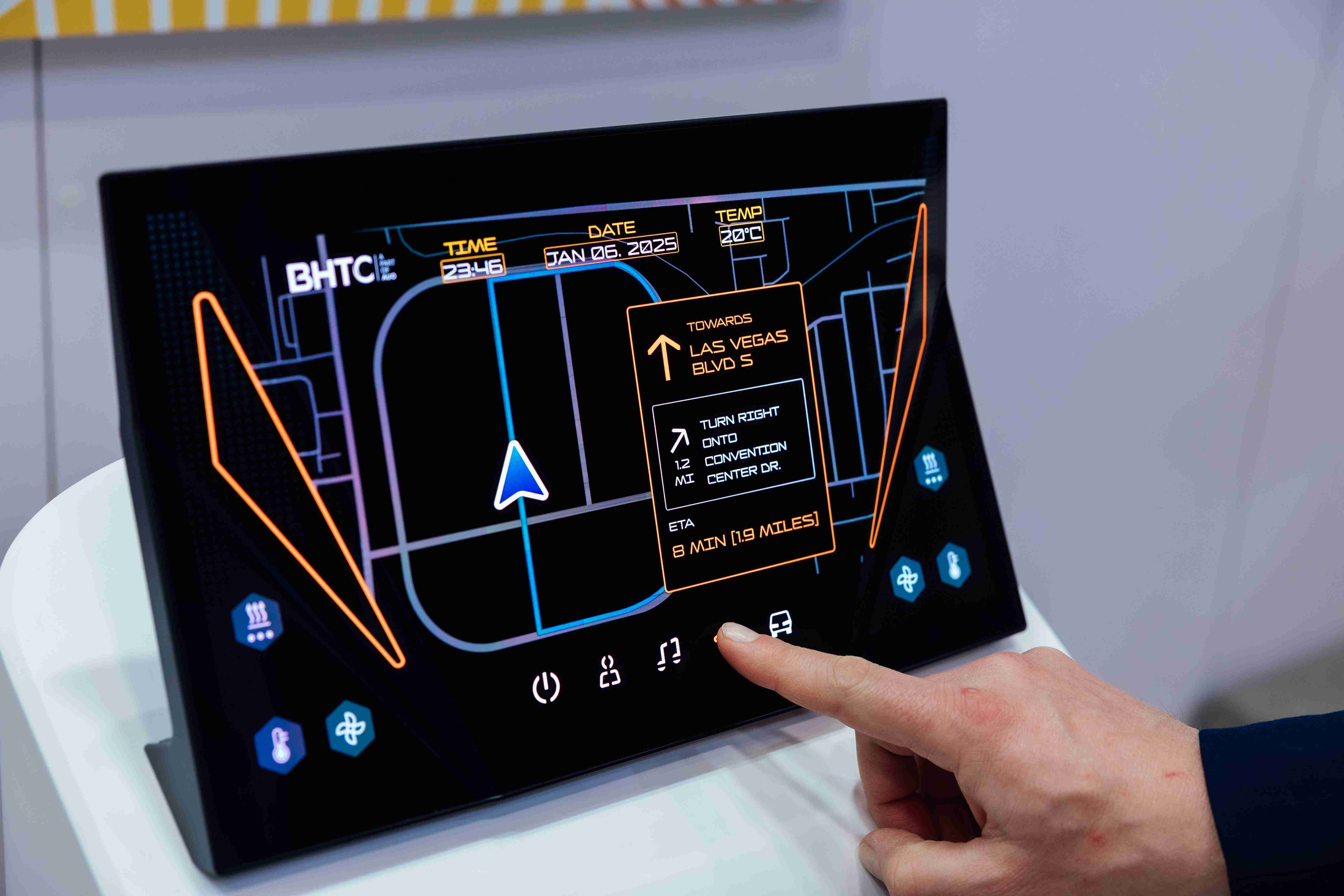 Micro LED可折迭触控显示器(Haptifold Display)结合BHTC多年HMI设计经验,,整合中控台和温度控制功能,,,以优美的曲面和独特的外型助力车内设计美学,,在辅以触控回馈下,,为驾驶带来更直觉的使用体验。。