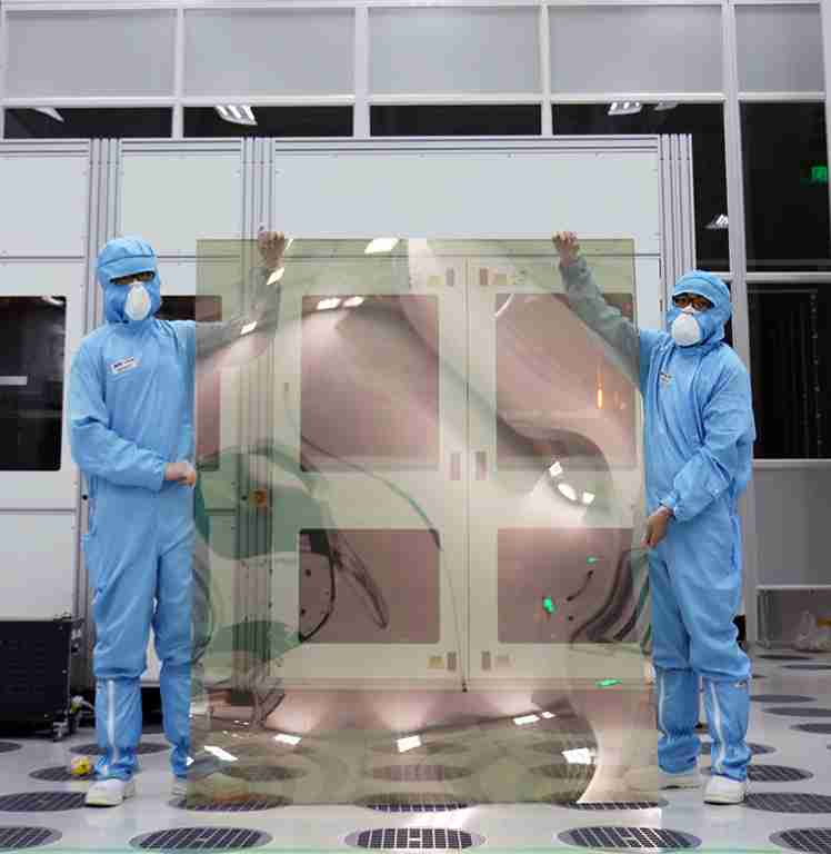 彩运网昆山厂第六代 LTPS (低温多晶硅) 生产的玻璃基板尺寸为 1500x1850 mm (毫米)